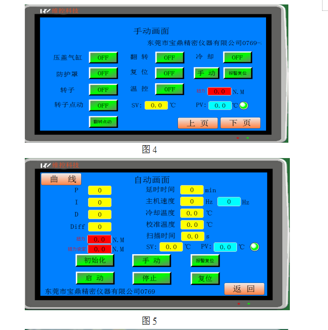 如圖4,在此頁面中,操作者可手動(dòng)操作轉(zhuǎn)子,翻轉(zhuǎn),冷卻等功能,點(diǎn)按下頁,
