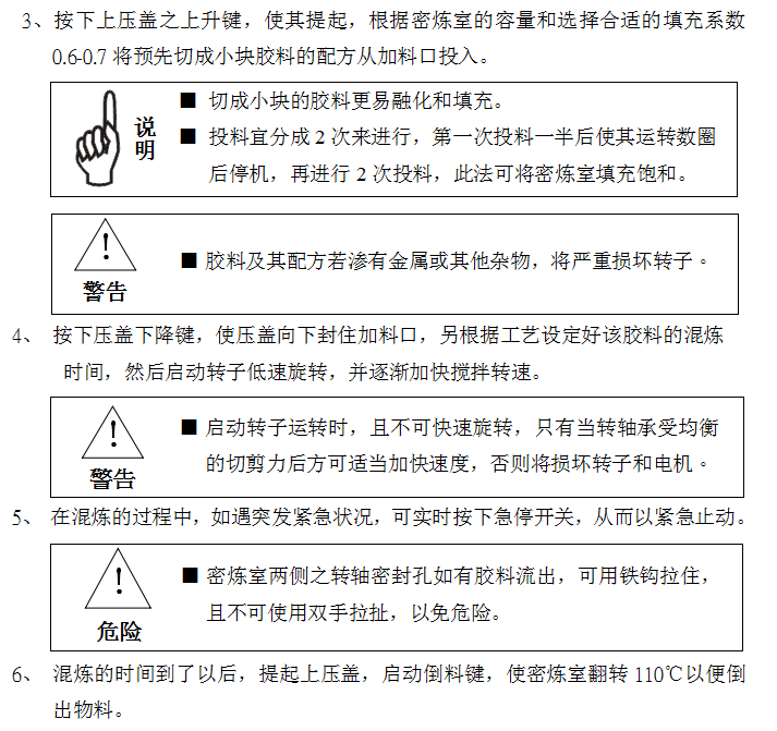 4、檢查密煉室內(nèi)轉(zhuǎn)子間是否有雜物,上壓蓋,翻轉(zhuǎn)門,電控和指示信號是否正常。