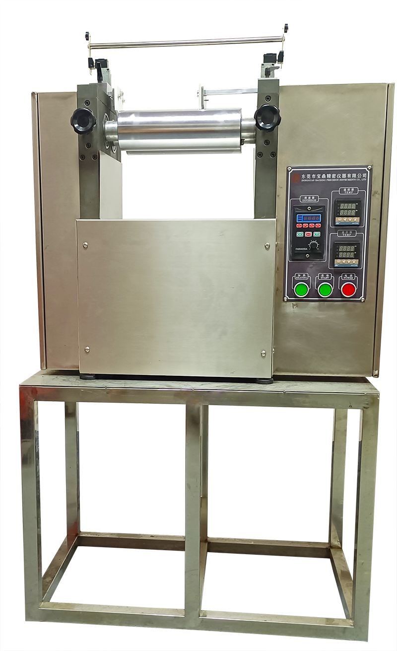 5、按下啟動鍵,使輥筒旋轉,然后將物料倒入輥筒之切槽進行攪煉。