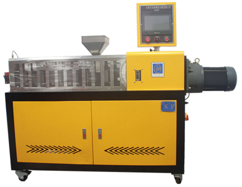雙螺桿擠出機主要的作用是將高分子聚合物塑化擠出。它是由兩根旋轉(zhuǎn)且方向相同,螺紋互相咬合的螺桿和機筒組成。螺桿和料筒均采用40CrNiMo合金鋼,表面經(jīng)滲氮和超精珩磨等工藝處理。料筒上面配備有5區(qū)加熱,模頭和模口1區(qū)加熱,共有6區(qū)加熱。