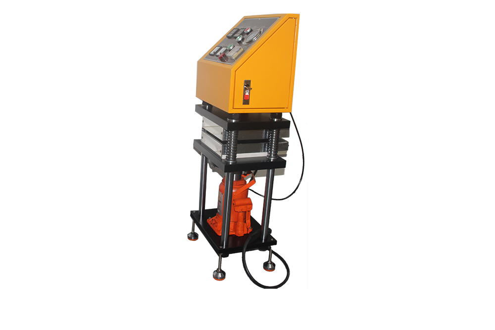 下加熱板之間,手壓液壓操作桿使熱壓板合模,進行加壓并保持壓力,隨后按下計時鍵,開始計時。