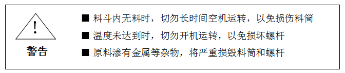 (1)點動螺桿鍵,檢查主電機旋轉(zhuǎn)方向是否正確,正確的旋轉(zhuǎn)方向是面對驅(qū)動電機輸出軸時為逆時針旋轉(zhuǎn),即兩根螺桿異向外側(cè)旋轉(zhuǎn)。