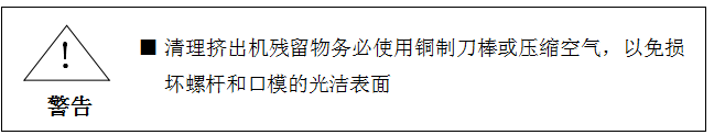 (4)雙螺桿擠出機試驗完畢,清空料斗中的余料,逐步的降低螺桿轉(zhuǎn)速,以機頭中沒有原料擠出后才能停機,接著趁熱清理機頭和擠套內(nèi)的殘留物。