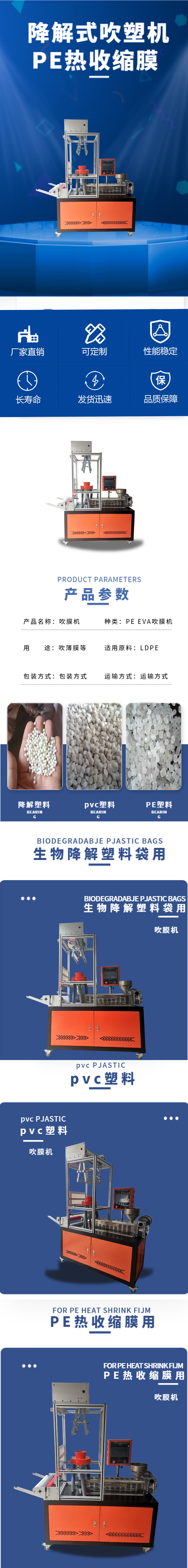 BD-8878-B色母粒吹膜機 薄膜吹塑機 PLA降解料吹膜機